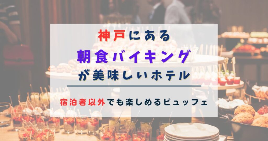 神戸にある、宿泊者以外も朝食バイキングを楽しめるホテルをご紹介します。 こんなお悩みはありませんか? 宿泊者以外も利用できる朝食バイキングを探している 神戸で朝食の美味しいホテルはどこ? 神戸で朝食バイキングを楽しめるホテルを知りたい! 神戸... -