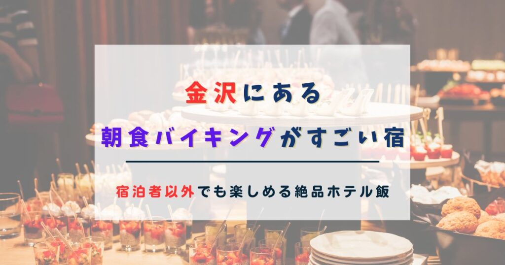 金沢にある、宿泊者以外も朝食バイキングを楽しめるホテルをご紹介します。 こんなお悩みはありませんか? 宿泊者以外も利用できる朝食バイキングを探している 金沢の朝食が美味しいホテルはどこ? 金沢で朝食バイキングを楽しめるホテルを知りたい! 金沢... -